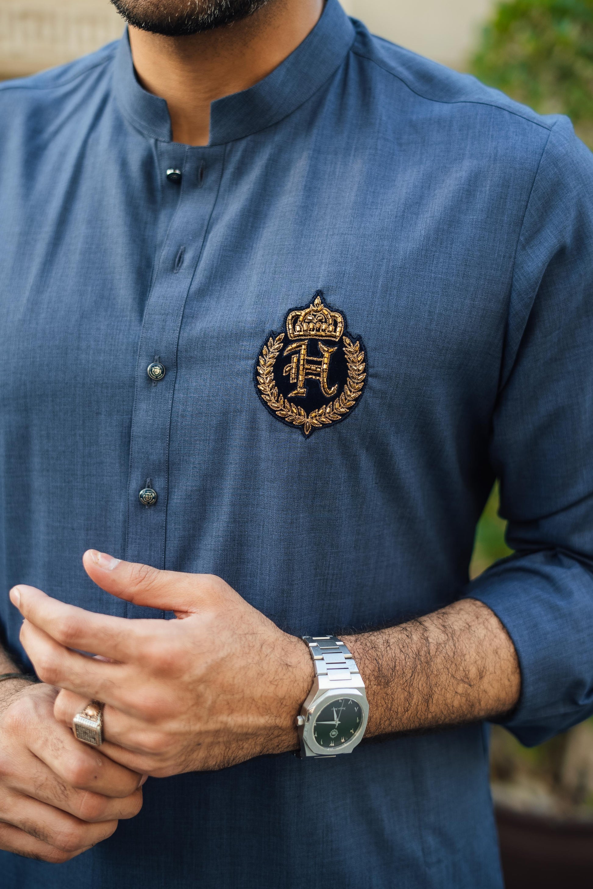 BLUE TEXTURE WASH N WEAR KURTA PAJAMA