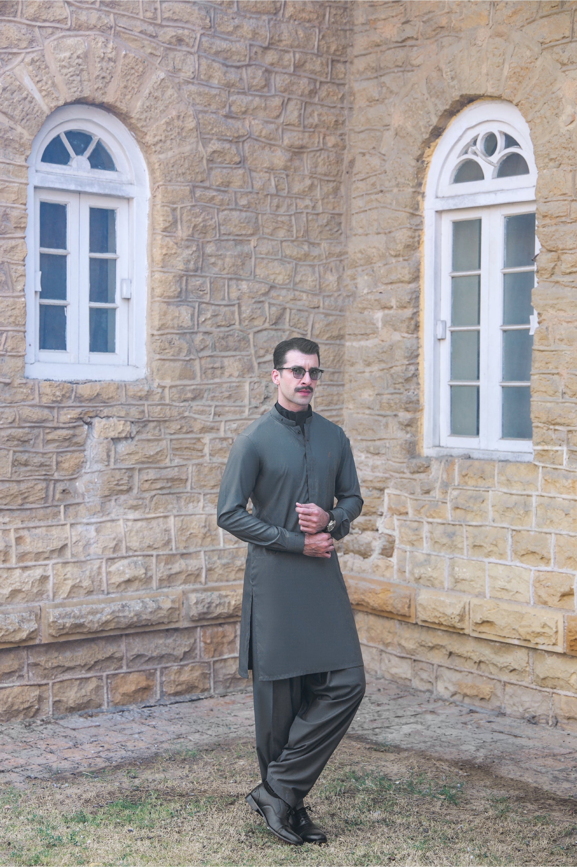 GREY TWO TONE WASH N WEAR SHALWAR KAMEEZ
