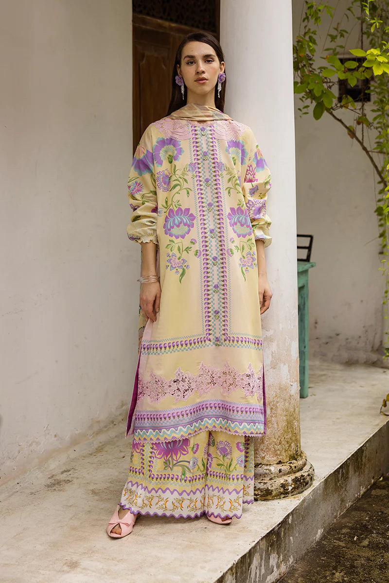 Printed Lawn Front Printed Lawn Back & Sleeves Embroidered Neckline Motif Crochet Lace for Neckline & Daman Crochet Lace for Daman Handmade Tassels for Neckline
