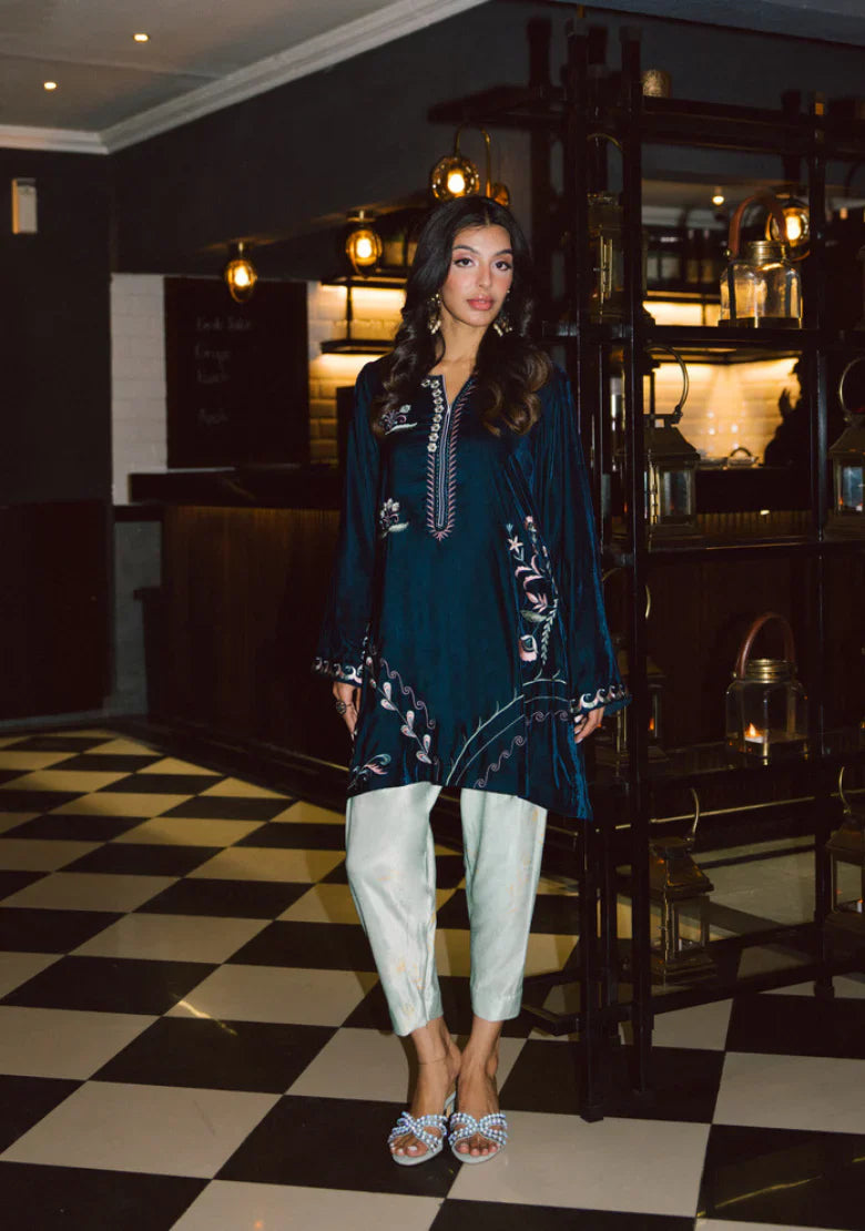 Includes an embroidered shirt and skinny shalwar