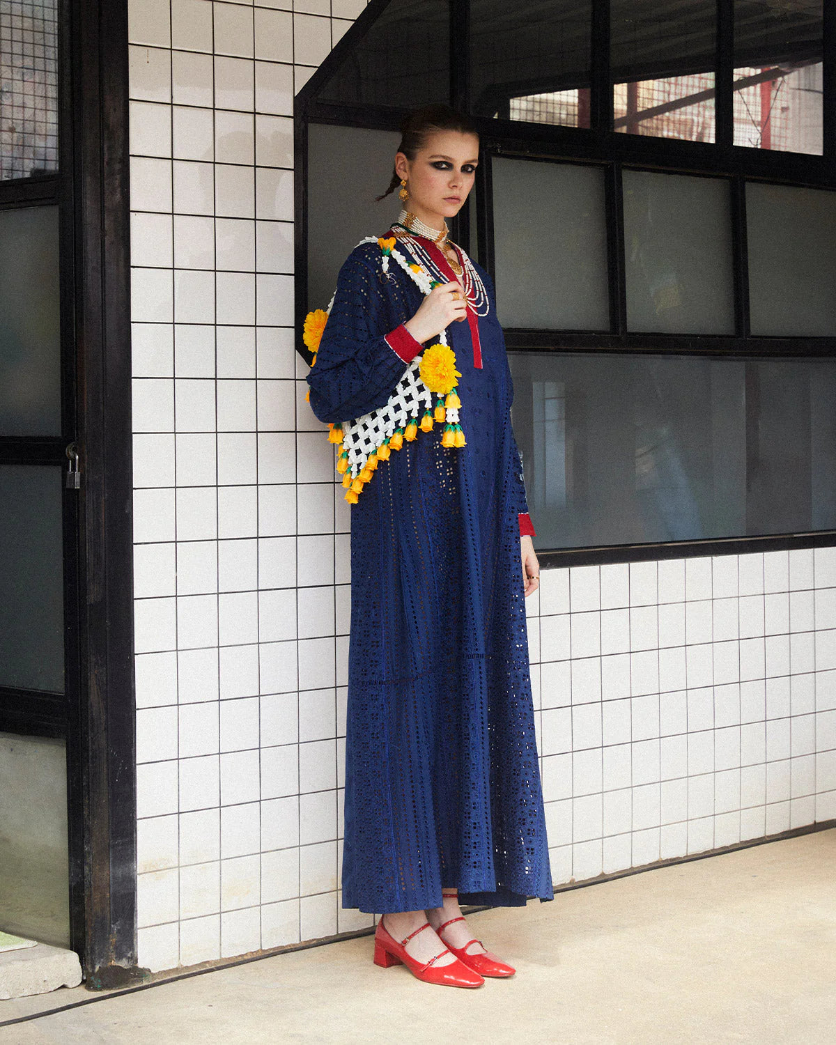 Product Description: This stunning outfit features a long straight shirt with intricate shiffli embroidery, exuding timeless elegance. The slide slits and red details on the sleeves and neckline add a touch of vibrancy and allure, while the matching trousers complete the ensemble with effortless style.