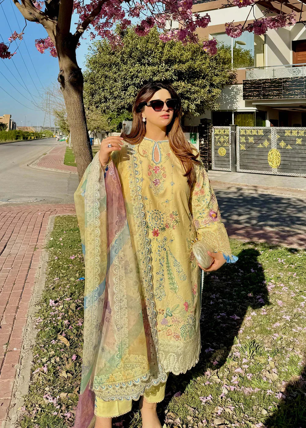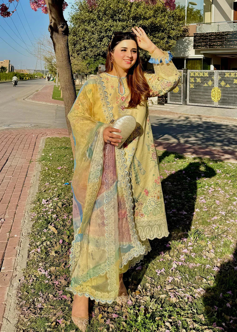 Description: Romancing summer, this beautiful pastel palette based design is a keeper. Like spring in bloom, the densely crafted floral sleeves and an engineered heavily composed front offers the perfect soft look ! Paired with a gorgeous digitally printed organza dupatta with a bed or rose and a contemporary setting for color blocking to lift the overall look. Care Instructions : 1- Do not bleach or use stain removing chemical 2- Dry in shade 3- Iron at moderate temperature 4- dry clean only 5- wash colors and whites seperately