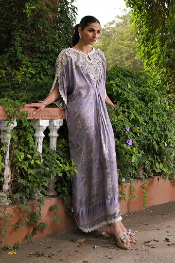N|F signature prints return in fresh form for this festive season. Cut from raw silk, this ensemble with dainty florals is given an ombre treatment with electric blue flowing into a soft turqoise. The print is enhanced with signtaure N|F embroideries along the neckline and daaman. Pair it with a two tone silk dupatta and detailed pants for an elegant look.