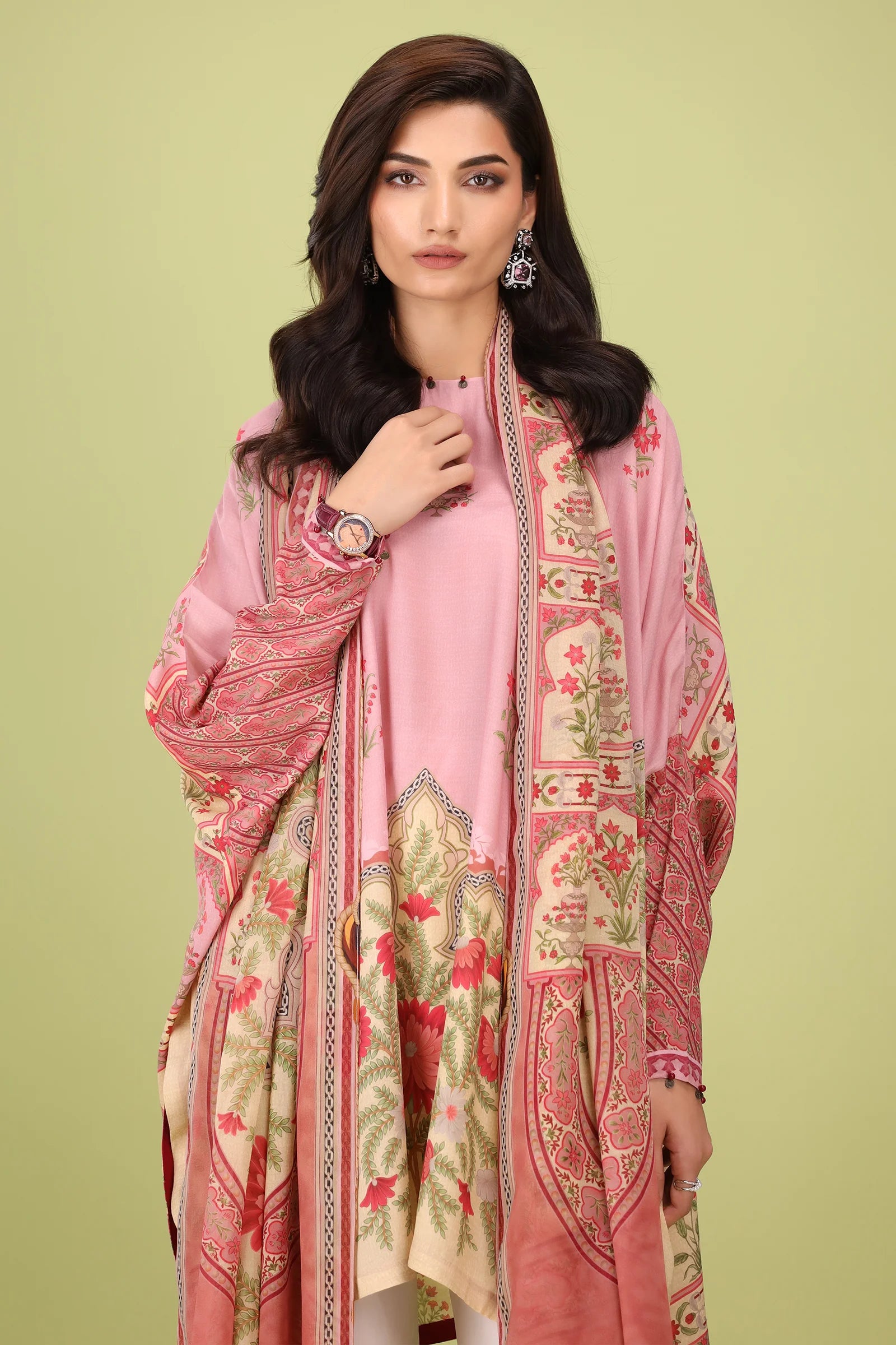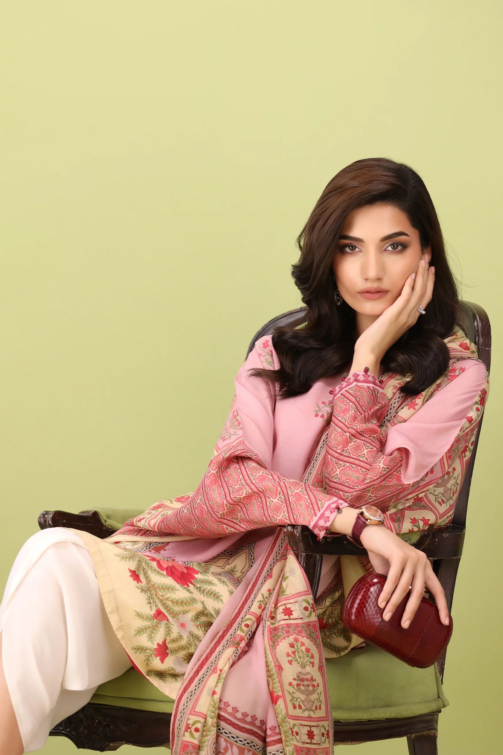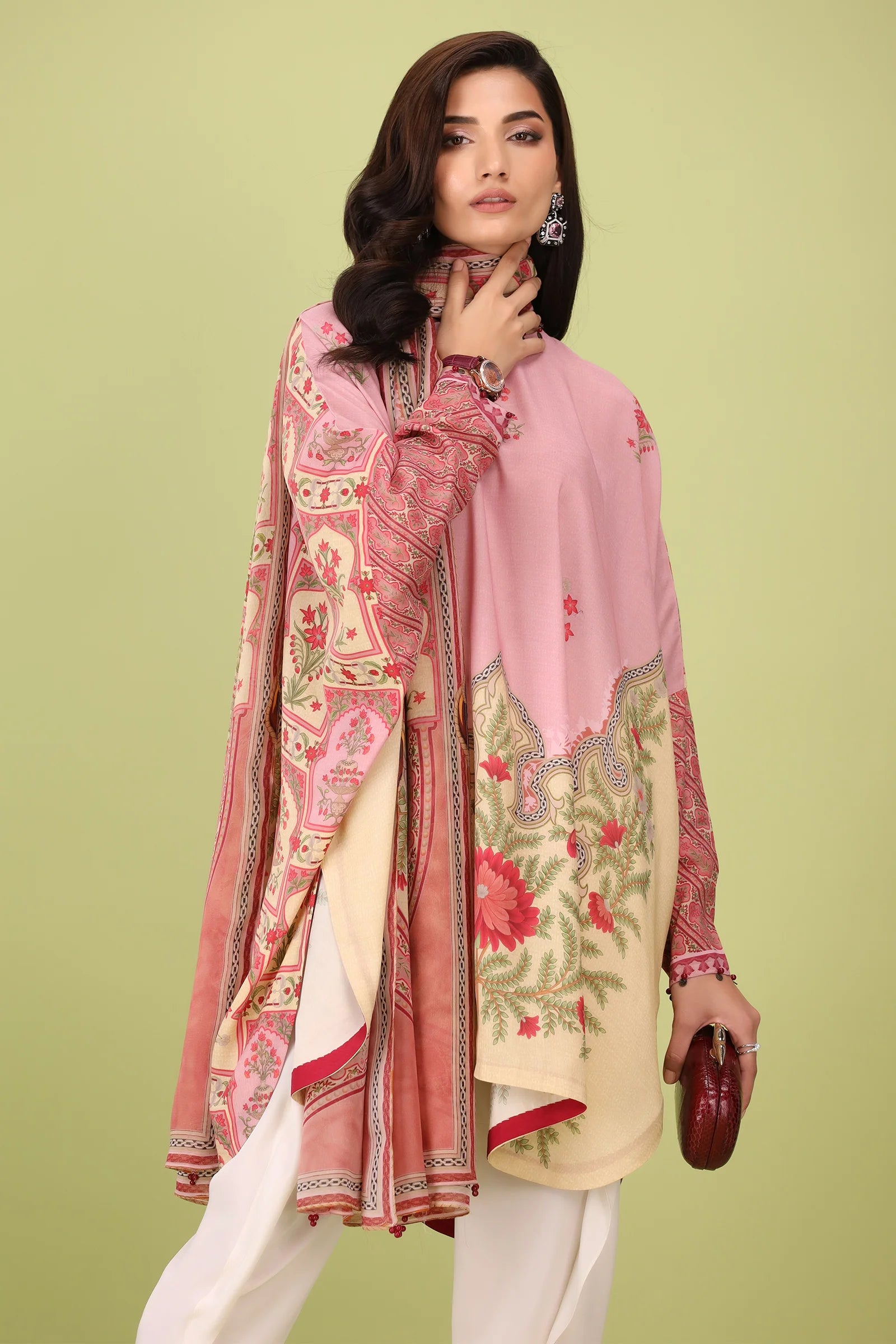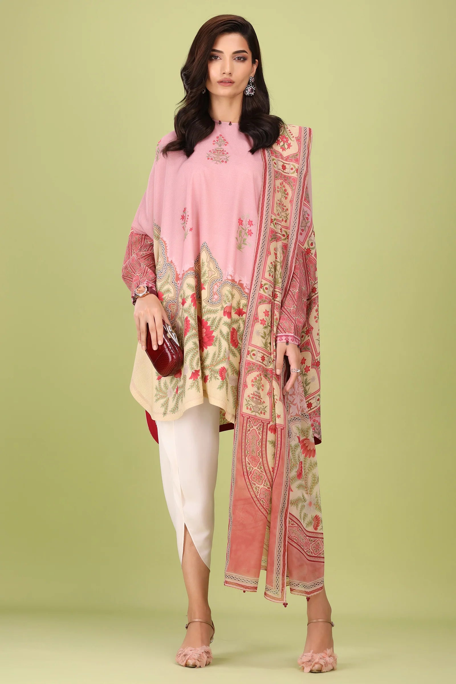 Presenting Naomi , a masterpiece in luxurious silk that flawlessly merges bold sophistication with refined elegance. The rich rose pink canvas is adorned with a captivating tribal floral print in shades of scarlet, sage green, and rose pink, seamlessly blending ornamental designs with geometric precision. The color block detailing in crème yellow adds an exquisite contrast, elevating the ensemble to new heights of opulence.